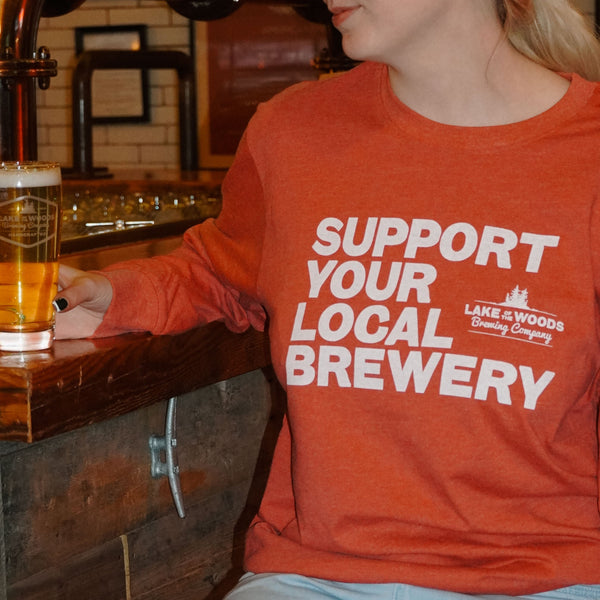 Say it loud, say it proud. This long sleeve tee does exactly what it says on the front. Featuring “Support Your Local Brewery” across the chest alongside our Lake of the Woods Brewing Company logo, it’s a statement piece with serious everyday wearability.
